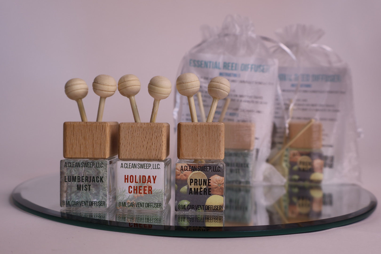 Luxury scent—without the plug-ins, fake pine, or chemical hangover. Each diffuser is hand-poured with oils and designed to slowly release the scent wherever you need it: your car, your entryway, your office, bathroom, etc.